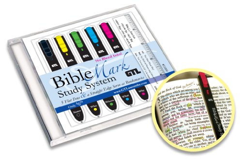 Exactly what I needed!, February 15, 2012 By Mom of 3 sons (OH, USA) - See all my reviews Amazon Verified Purchase This review is from: Highlighter-Bible Mark Study System (Hardcover) I love the pens-they do not leave gouges on the fine bible paper and the ruler is so helpful. Very compact and organized.