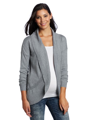 Three Seasons Maternity Women's Long Sleeve Shawll Cardigan Sweater, Heather Grey, Medium